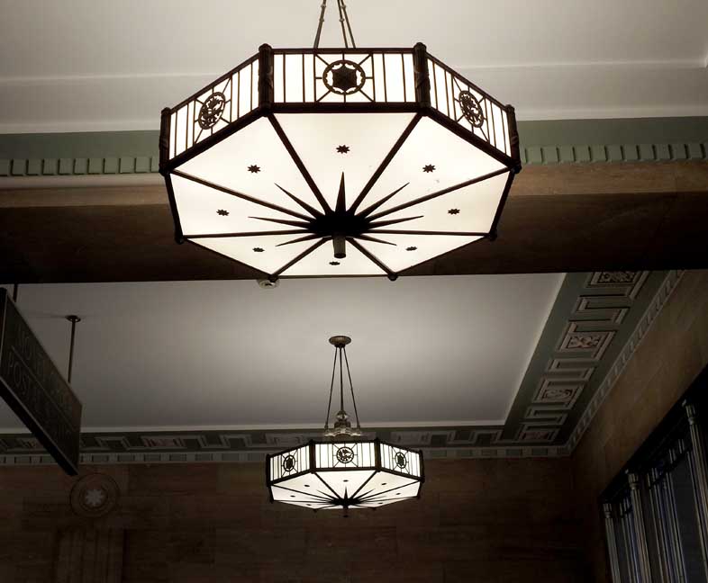 ![]() Looking across Court Street at the NY State Office Building ![]() Foyer ... Art Deco style light fixture ![]() Art Deco style light ![]() ![]() Art Deco style light ![]() ![]() Art Deco style light fiuxtures with center sunburst ![]() ![]() ![]() ![]() Art Deco style light fixtures ![]() ![]() Art Deco style geometric ornamentation ![]() Art Deco style cast aluminum table ... Three details below: ![]() Art Deco style cast aluminum table detail #1 - White birch rods, tied together with leather ribbons into a cylinder serves as column shaft ![]() Art Deco style cast aluminum table detail #2 - Volutes and acanthus leaves in capital ![]() Art Deco style cast aluminum table detail #3 ![]() |
