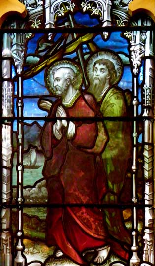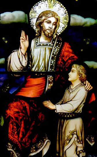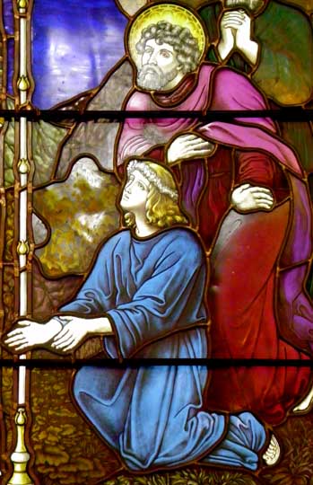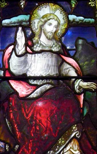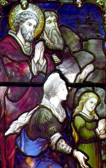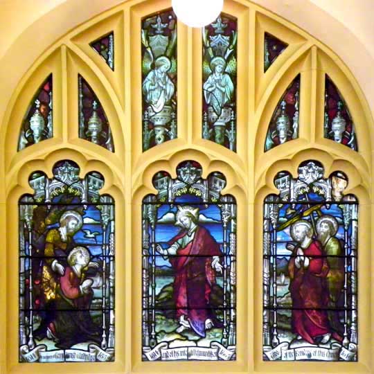 arcade window: Jesus Calls John to be an Apostle ![]() ![]() Left panel, Jesus Calls John to be an Apostle: John ![]() Center panel, Jesus Calls John to be an Apostle: Jesus ![]() Right panel, Jesus Calls John to be an Apostle |