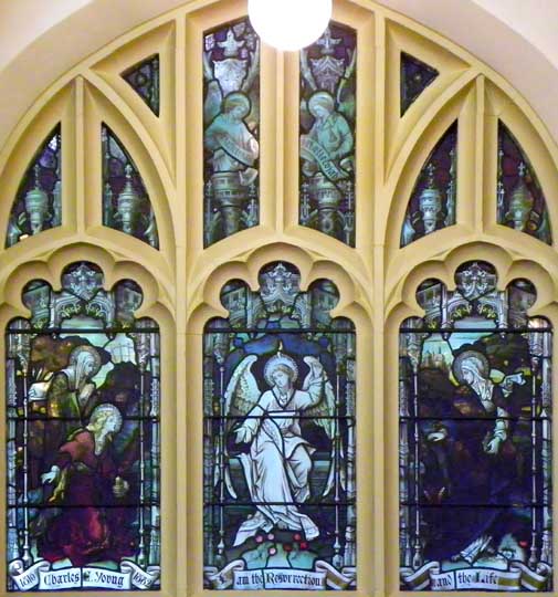 Arcade window: Resurrection ![]() Arcade window: Resurrection (Iconography) ![]() Left panel, Resurrection ![]() Center panel, Resurrection ![]() Right panel, Resurrection |