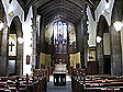 The small unassuming chapel now sits within the shadow of Trinity Church. The New York City architects Ralph Adams Cram and Bertram Goodhue are responsible for the current interior datingfrom 1913. They added the decorated Gothic ceiling, the stone pillars, the chancel and the carved choir stalls. In the chancel they placed a triptych reredos depicting "The Boy Christ in the Temple." Originally the church was little more than a room with a platform at one end of it.