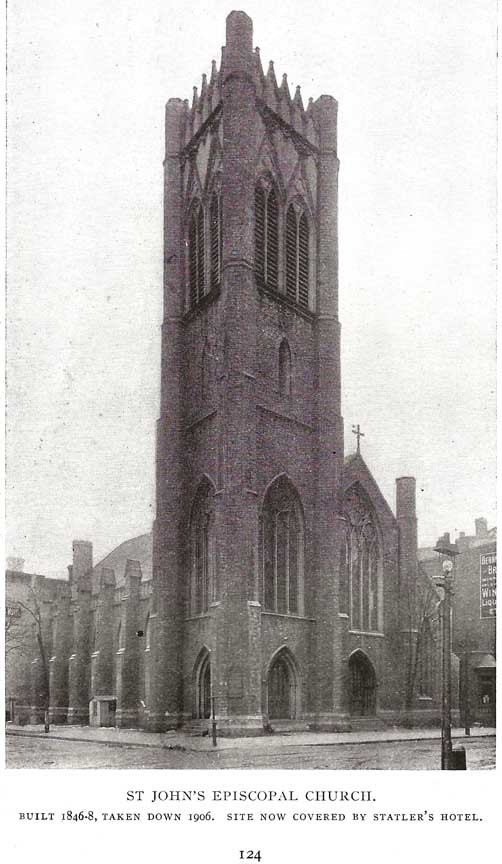 The first St. John's Church on Washington near Swan ... A schism in Trinity displaced a group of bachelors who founded St. John's. ... Statler Hotel ...