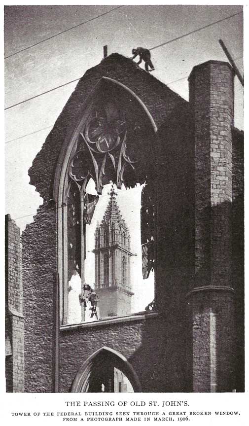 Federal Building ... A skyrocket landed in the tower of the original St. John's Church resulting in extensive damage to the building. Church members who disagreed with the decision to rebuild left and organized Christ Church on Delaware Avenue. ...