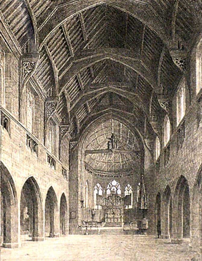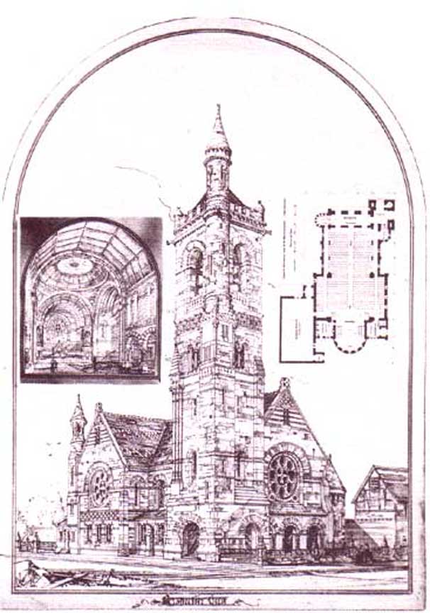 Arthur Gilman's design for Trinity Church at 389 Delaware. Only the foundation was laid. ... Illustration source: Trinity Episcopal Church archives