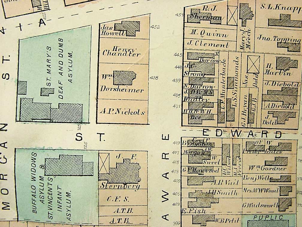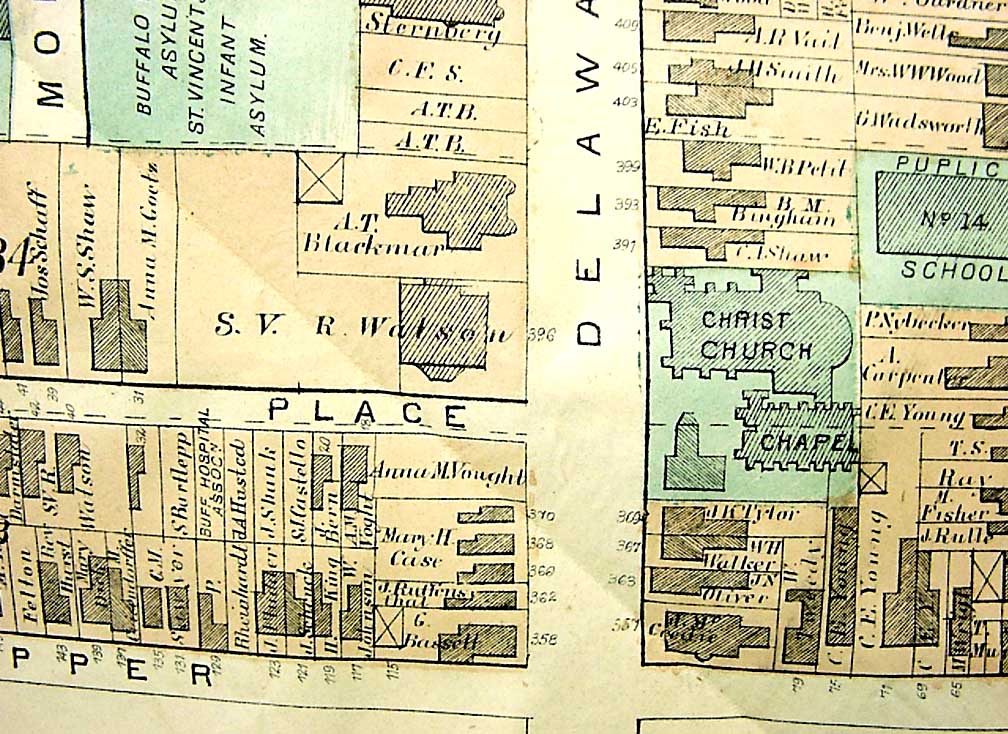 Dorsheimer House designed by H. H. Richardson, one block north of the church on Delaware (See maps in lower two illustrations)