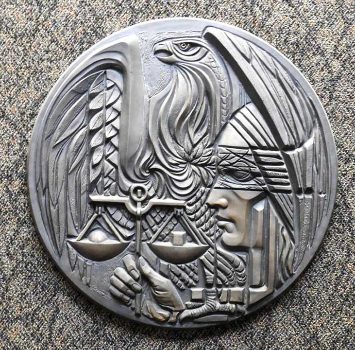 ![]() Sculptor: Louis F. Dlugosz (bio) ... "Liberty" ... Bronze ... Blindfolded, holding scales ... Bald eagle |