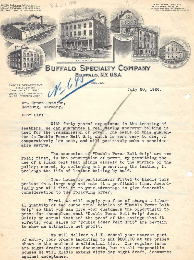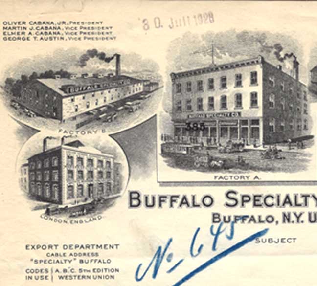 factories in Buffalo, also in Canada, England and Germany. Sales went