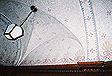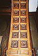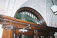 Half-circle wrought iron grill over main entrance, showing the vaulted mosaic ceiling and woodwork |