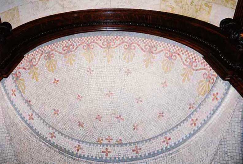 Aug. 2004 photo. South end of the eliptical-shaped entrance vestibule, the ceiling being entirely of mosaic
