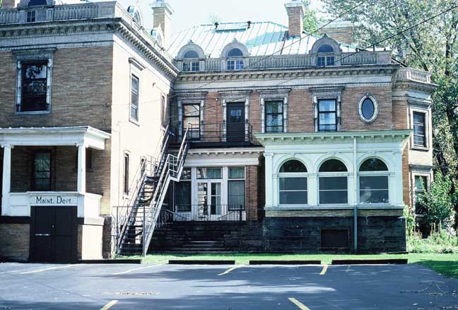 Oct.1985 View of the west side of the house, showing the alccve of the dining room and the solarium with its arched window treatment Illustration courtesy of Gabriel E. Duffee, OSB