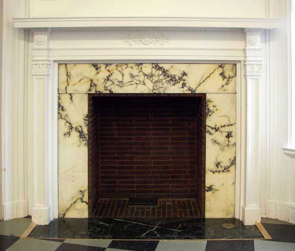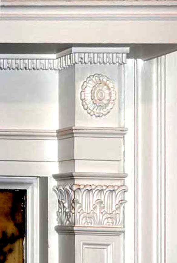 Paneled columns              Fireplace marble surround and hearth           Two details below: