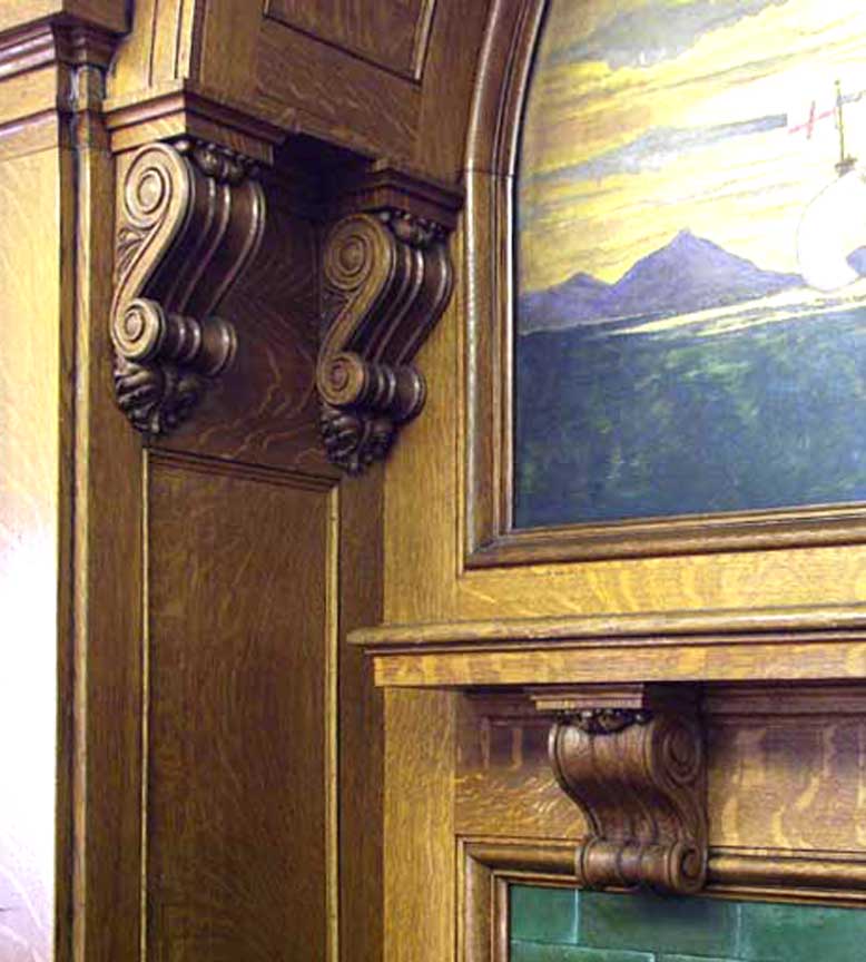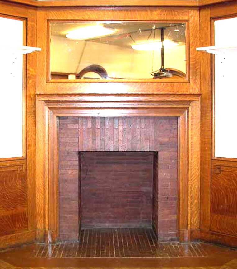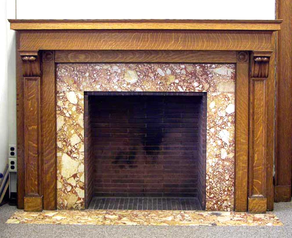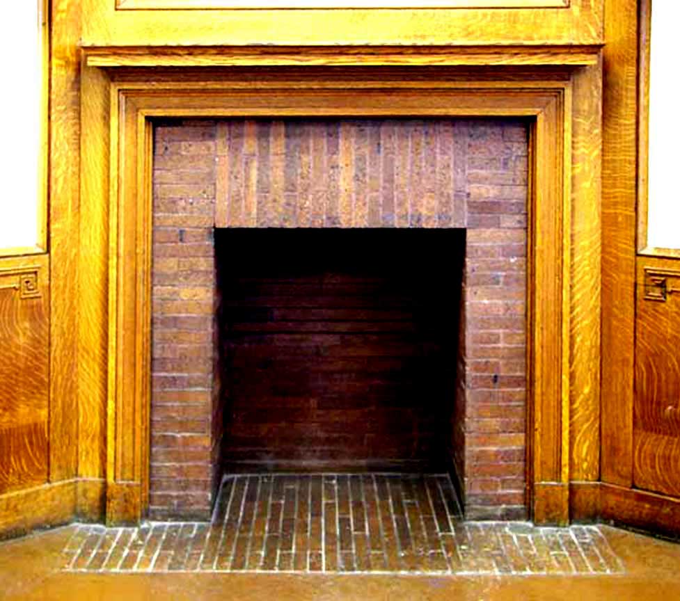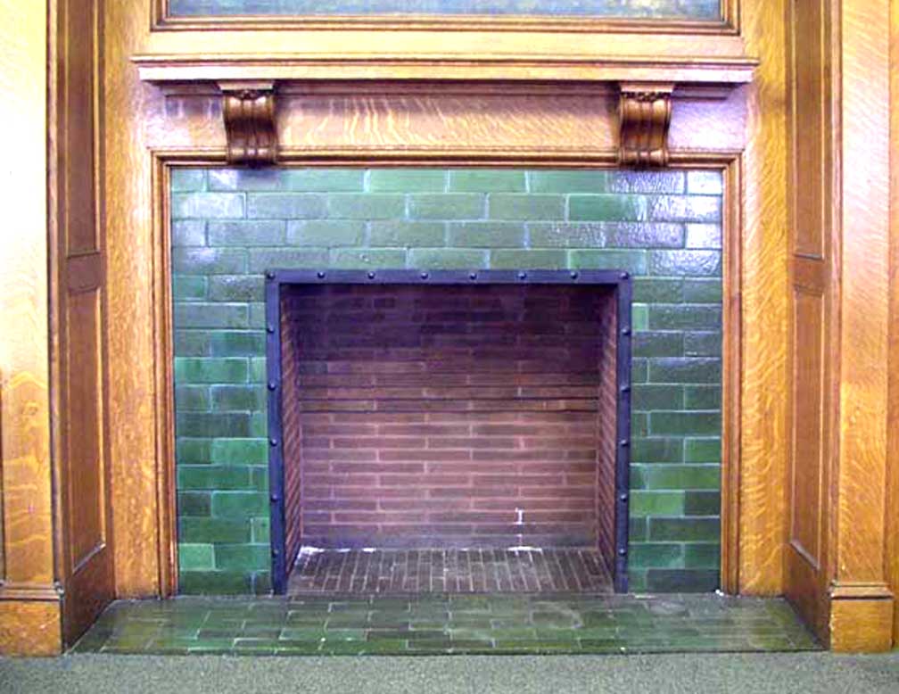 ·  Ancones supporting mantel                     Glazed brick fireplace  surround and hearth