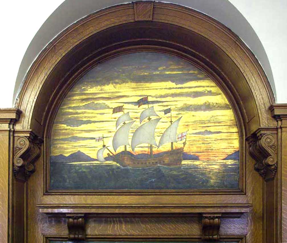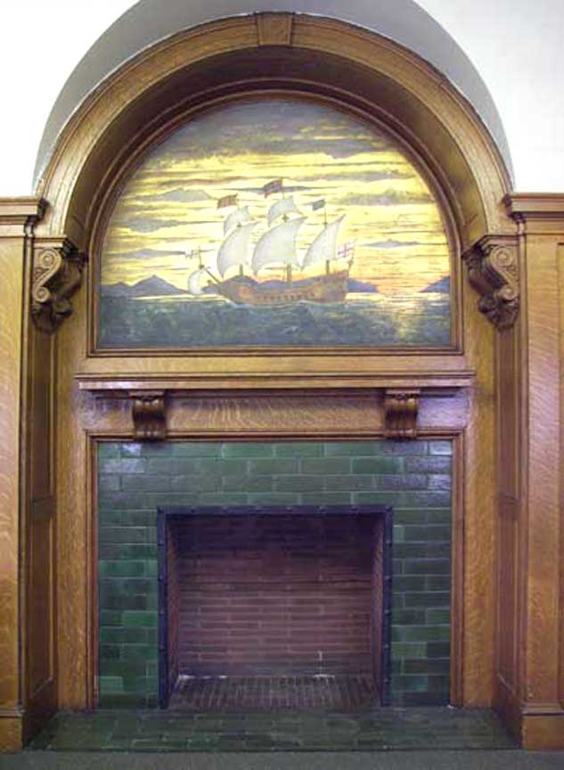 Painting in overmantel                 Oak: Ancones supporting mantel and arch with keystone