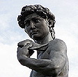 David was given to the City and the Historical Society as a gift by Andrew Langdon, Buffalo businesssman and scholar. In 1900, Mr. Langdon saw the bronze statue at the Paris Exposition, where it received a gold medal. He purchased the statue.David is 17 feet tall and stands on a 9 foot granite pedestal which weighs 3,800 pounds.