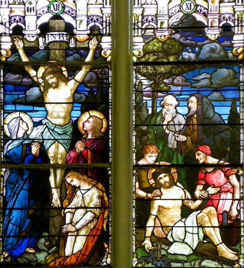 It is unusual to have the Stations of the Cross depicted in stained glass windows. (Placed in the church in 1913)