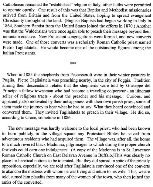 Page 6 - Catholics VS. Protestants in Pescassaroli; Italian emigration