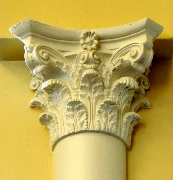 Corinthian capital: Paired volutes ... Fleuron ... 2 rows of acanthus leaves