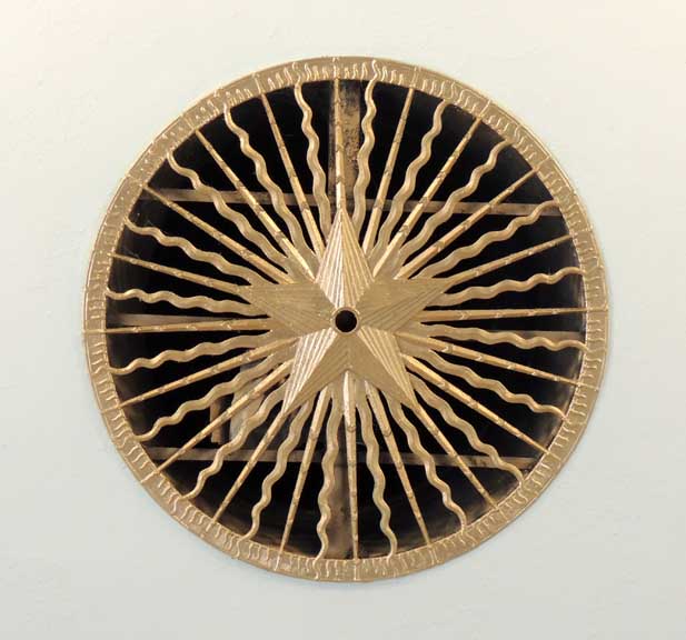 Note ceiling round, gold colored, starburst medallion (next illustration below)