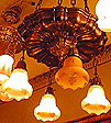 Art Nouveau amber etched scallop edge shades on Sheffield chandelier |