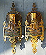 Sheffield fixture with Art Nouveau frosted shades with hand painted flowers |