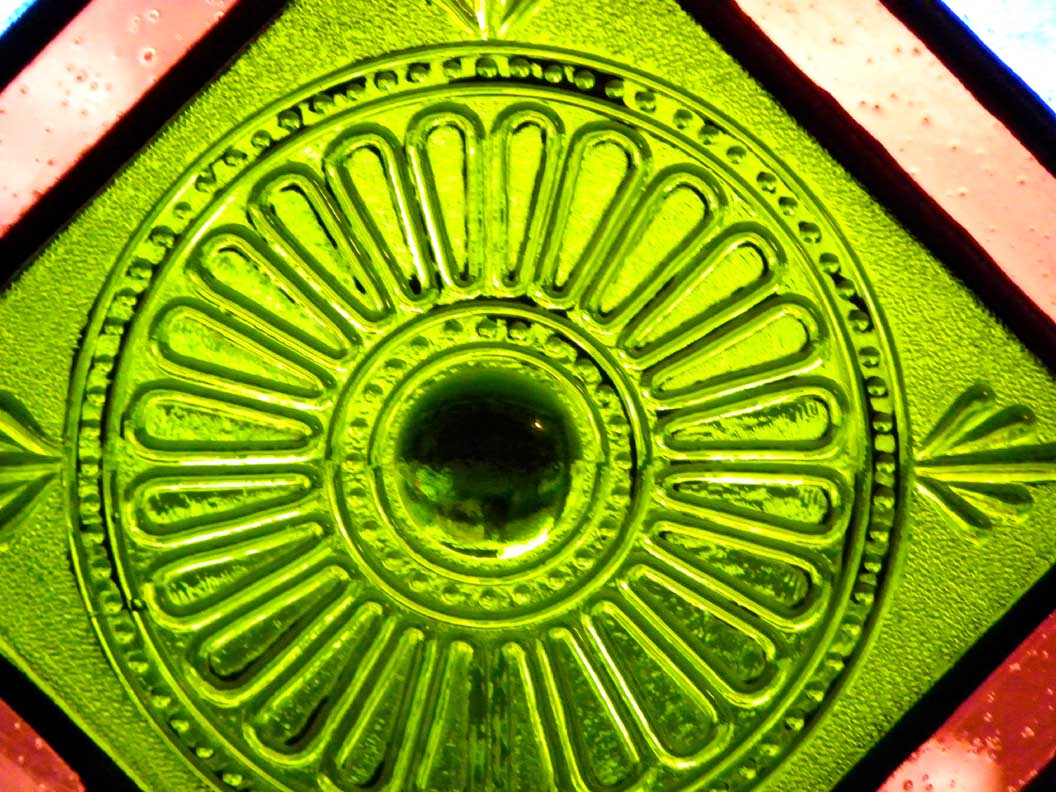 style featuring a center green mold-pressed