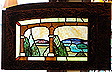 Stained glass - A process of coating a piece of glass with a chemical whose true color is developed by heat. This is the least expensive way of coloring glass. For windows, the staining material is painted on the annealed [cooled] article with a brush wherever the decorative effect is desired. It is then fired on for permanency at which time the glass assumes the desired color.