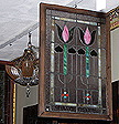 There are three main types of glass used in the windows shown on this page: stained glass, colored glass, and opalescent glass.