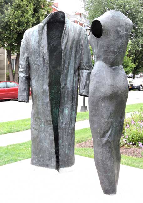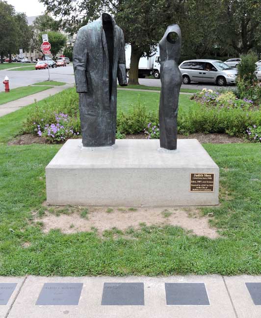 Buffalo Arts Commission and the Albright-Knox. Judith Shea is widely respected for her series of works which portray bodiless articles of clothing with no forms to fill them. Her history as a fashion designer has influenced her works for over 30 years. According to Buffalo Arts Commission Chair, Catherine Gillespie, this is the first time in 30 years that the City has added a work of art of this nature, that does not commemorate or memorialize an individual or group. This public art initiative is simply art for art’s sake. In her early works, such as the one that we see here, her [Shea] hollow figure compositions were created using heavy industrial felt, which was purchased from the Buffalo Felt Company. |