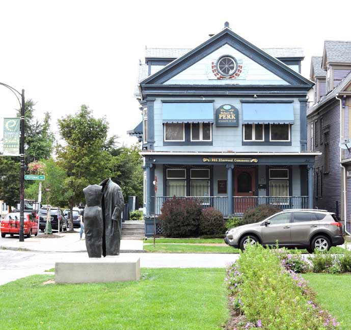 permanently recessed into the sidewalk at Elmwood Avenue and Bidwell