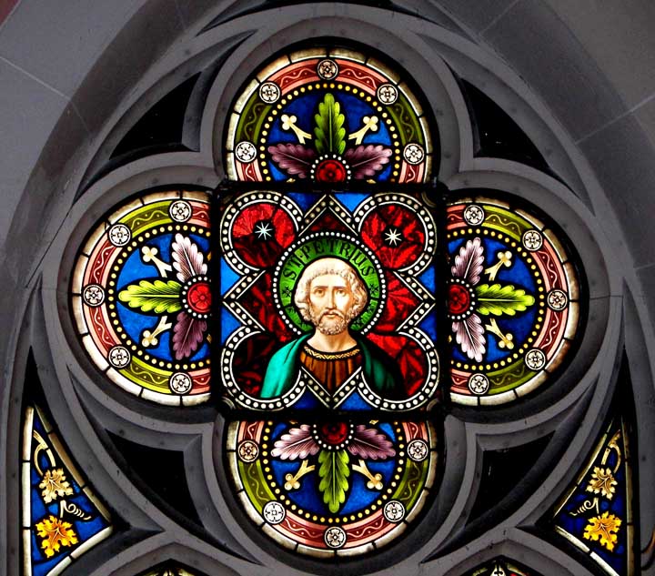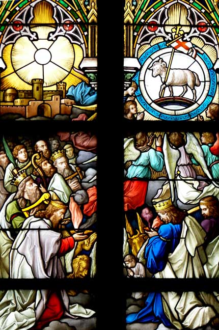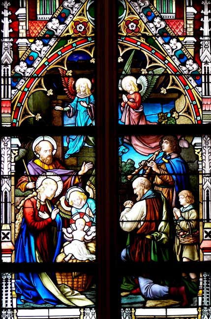 The eight lower windows of the transepts show scenes from the Life of the Holy Family.