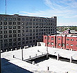 Upper stories of the building in the previous photo. Note the Power House chimney stack. |