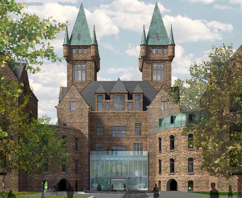 2006 The board of the Richardson Center Corporation (RCC) was appointed in July, 2006 by Governor Pataki to chart the future course of the rehabilitation of the historic former hospital designed by noted American architect H. H. Richardson and grounds designed by noted American landscape architect Frederick Law Olmsted. The RCC Board includes Stanford Lipsey, Chairman; Howard Zemsky, Vice Chairman; Paul Hojnacki, Treasurer; Commissioner Carol Ash, Clinton Brown; Paul Ciminelli; Christopher Greene, Esq.; Eva Hassett; Muriel Howard, PhD; and Richard Tobe. 2007 In August of 2007, The Richardson Center Corporation engaged the nationally recognized architecture and engineering team of Goody Clancy and Simpson Gumpertz & Heger to develop a Historic Structures Report for the H.H. Richardson Complex and Olmsted grounds. An important first step in the development of major sites of cultural heritage, a Historic Structures Report provides documentary and physical information about a property’s history and existing condition that serves as a guide during restoration and adaptive reuse. 2013 The re-greening of the South Lawn of the Olmsted-Vaux landscape was completed in 2013. Additional landscaping adjustments and a new northern roadway created a second entry to the campus. 2014-16 Hotel Henry Urban Resort Conference Center and the Lipsey Buffalo Architecture Center are at the heart of the rehabilitation and adaptive reuse of the Richardson Olmsted Campus. Construction began in October 2014 and was completed at the end of 2016, supported by state funds and historic tax credits. Both venues will occupy the iconic Towers Building and its two flanking structures. Design and construction team: Flynn Battaglia Architects, executive architect, Buffalo - Source: Richardson Olmsted Campus (online July 2020) |