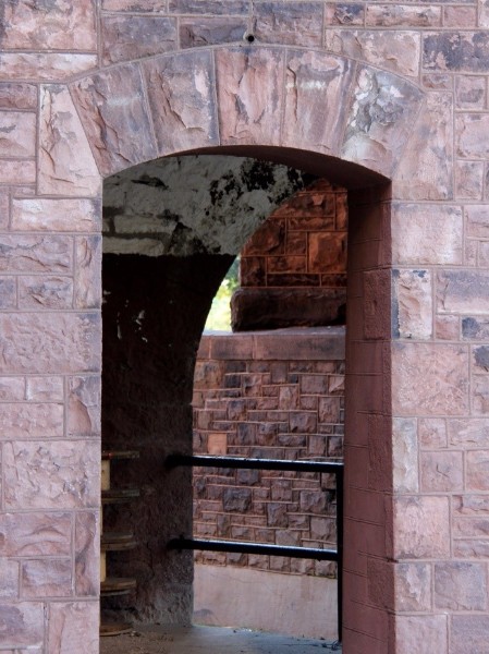 Medina sandstone up-close inside the North Entry ![]() The original red pointing was later replaced