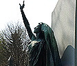 The 10-foot bronze, "Aspiration,"depicts a lightly robed woman, her head covered with a cape that sweeps behind her body as if blown by wind, her right arm stretching up and her expectant face tilted toward heaven. Any hint of sentimentality is dispelled by the palpable exaltation of the exquisitely modeled and energetic sculpture. Its size is monumental in scale and its subject is traditional in origin, but its spirit is thoroughly modern.See also: Joy of the Waters, by Harriet Whitney Frishmuth