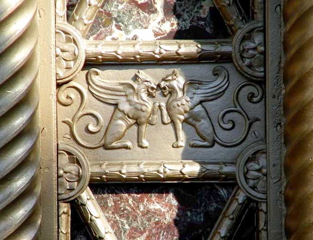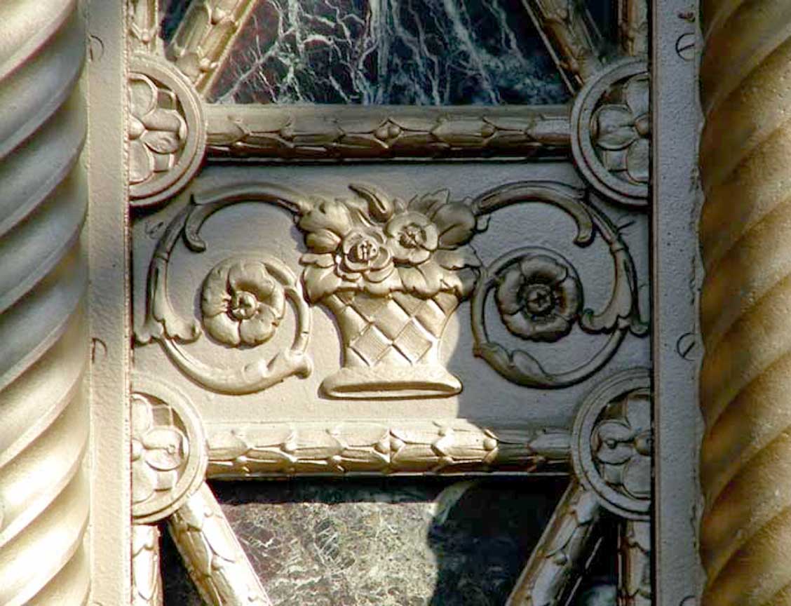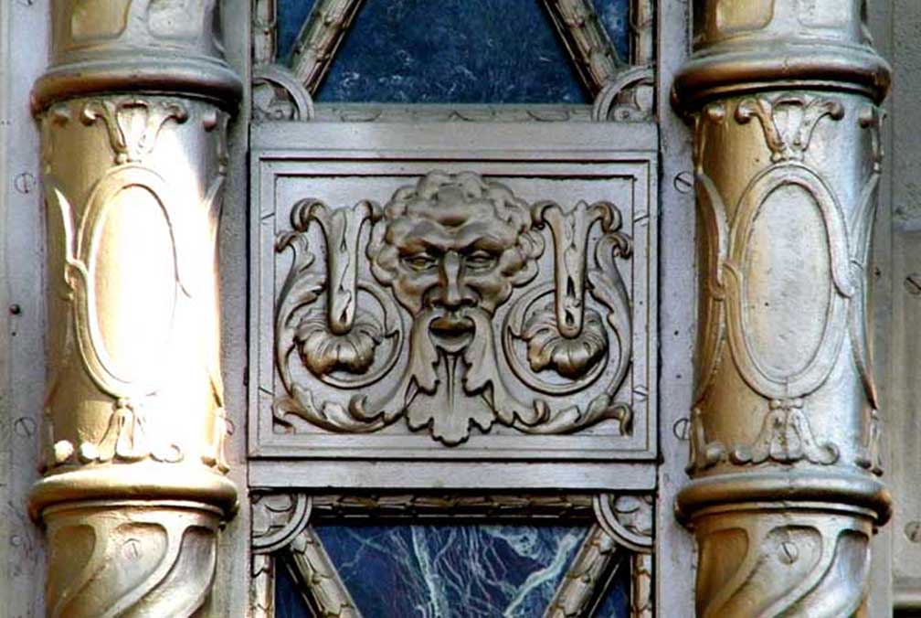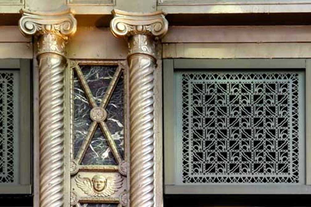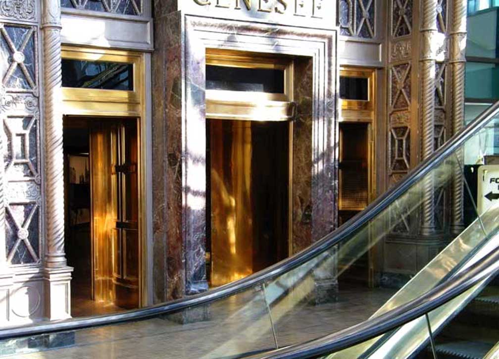 Genesee Building Facade ![]() Genesee Building facade transformed into an interior wall with the glass addition of the arium which served as a restaurant and mezzanine lounge ![]() Original Genesee Building entrance on Genesee Street Details below: ![]() Original Genesee Building entrance Cast iron ![]() Broken pediment with cartouche C scrolls ![]() ![]() Original Genesee Building entrance seen from behind the elevator to the mezzanine level Note flanking twisted cast iron columns ![]() Ionic style twisted cast iron columns Note putto ![]() Grotesque ![]() Basket with scrolling acanthus leaves ![]() Griffins |