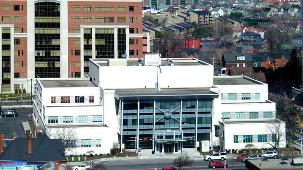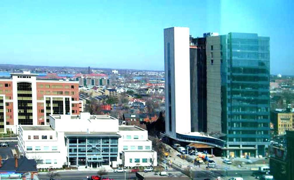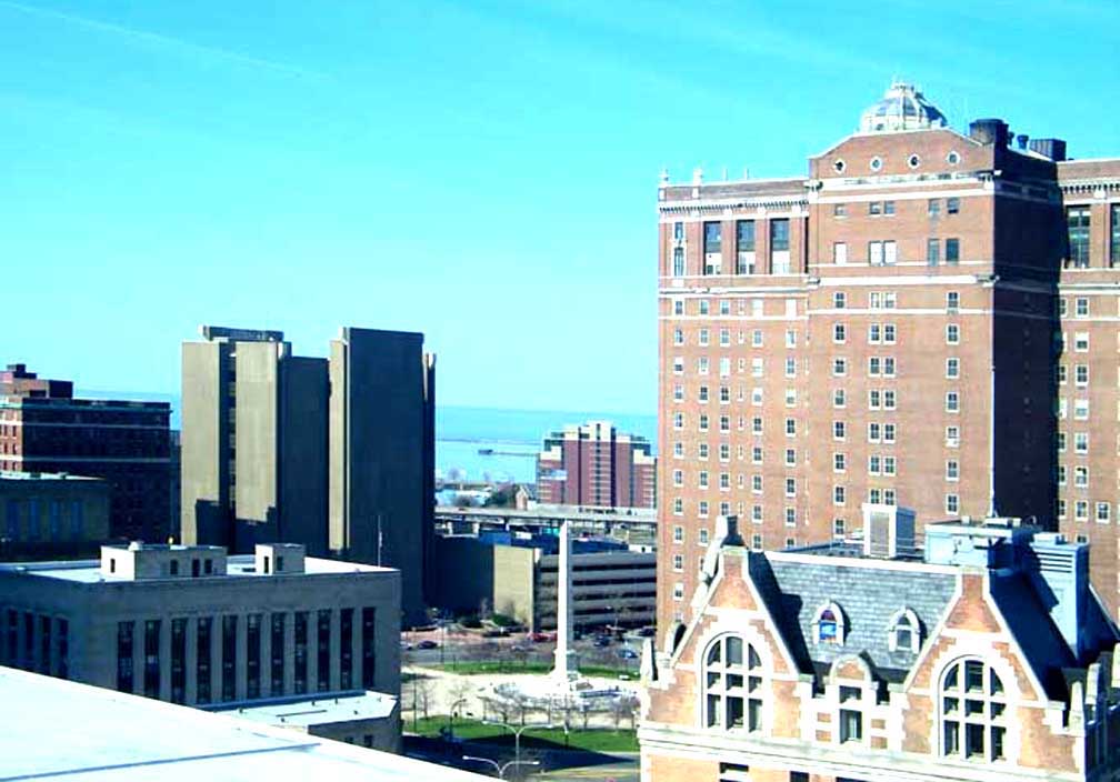 Lower left: Federal Reserve Building/New Era Caps Right: Dulski Federal Building/Avant ![]() Upper left: Federal Office Building Lower middle: Federal Reserve Building/New Era Caps ![]() Left tall gray building: City Court Building ... Statler Towers Right: City Hall top few floors behind Statler Towers Lower right : YMCA/Olympic Towers ![]() Far left: Convention Center YMCA/Olympic Towers
