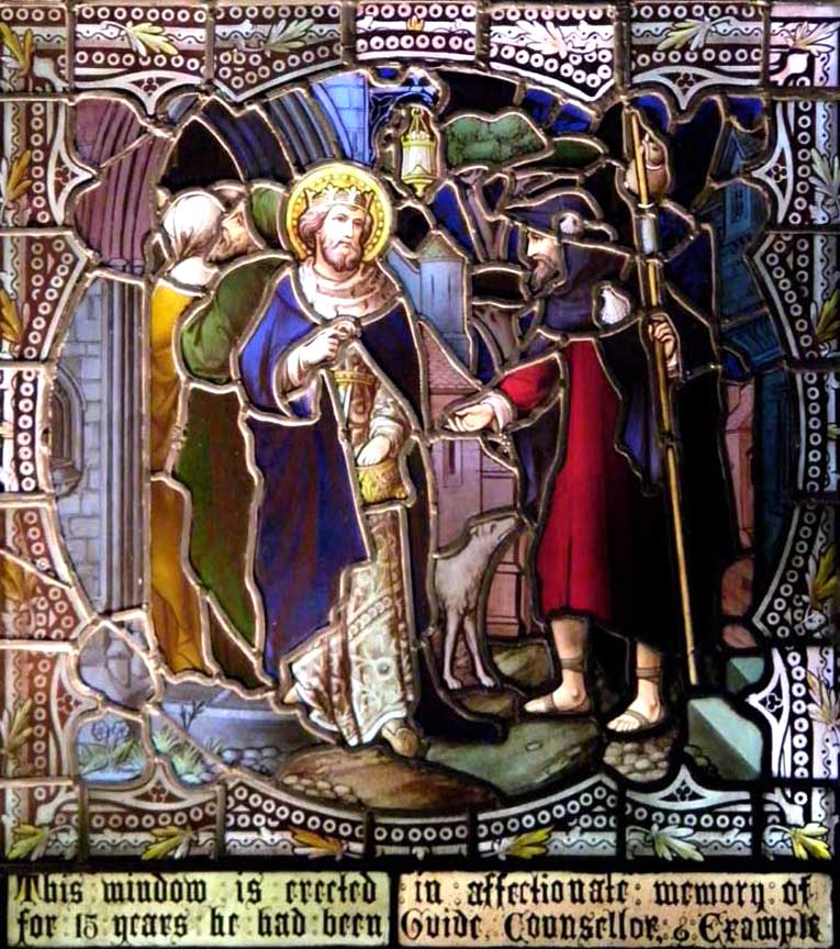 ![]() St. Edward the Confessor Top panel St. Edward's reputation for holiness, which began during his life, was based on his accessibility to his subjects, his generosity to the poor, ... Tradition of his physical appearance: he was a tall man with a long face, ash-blond hair and beard, ruddy complexion and long, thin fingers. - Iconography in Art and Architecture: St. Edward the Confessor ![]() St. Edward the Confessor The legend of his ring is that Edward gave a ring to a beggar near