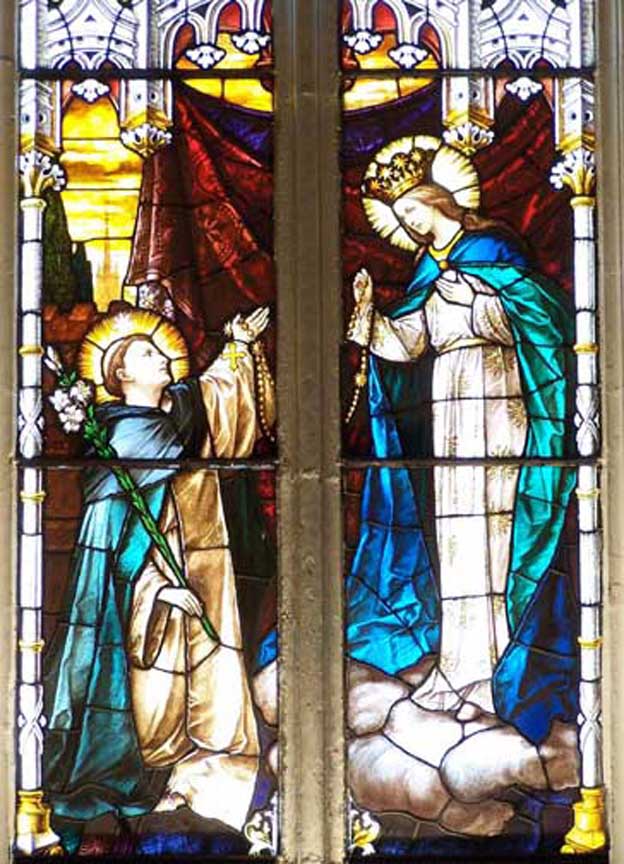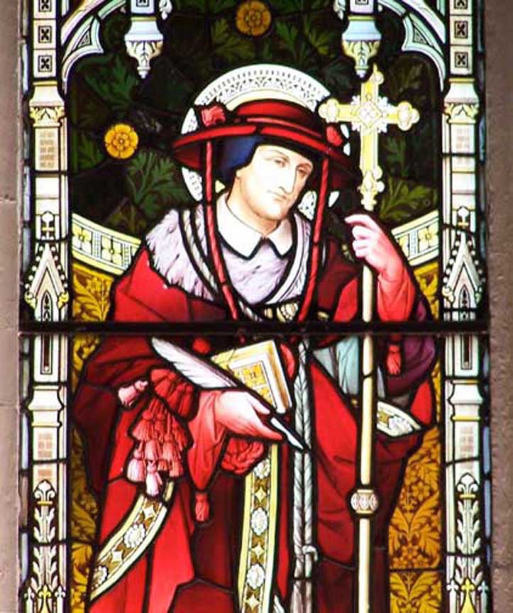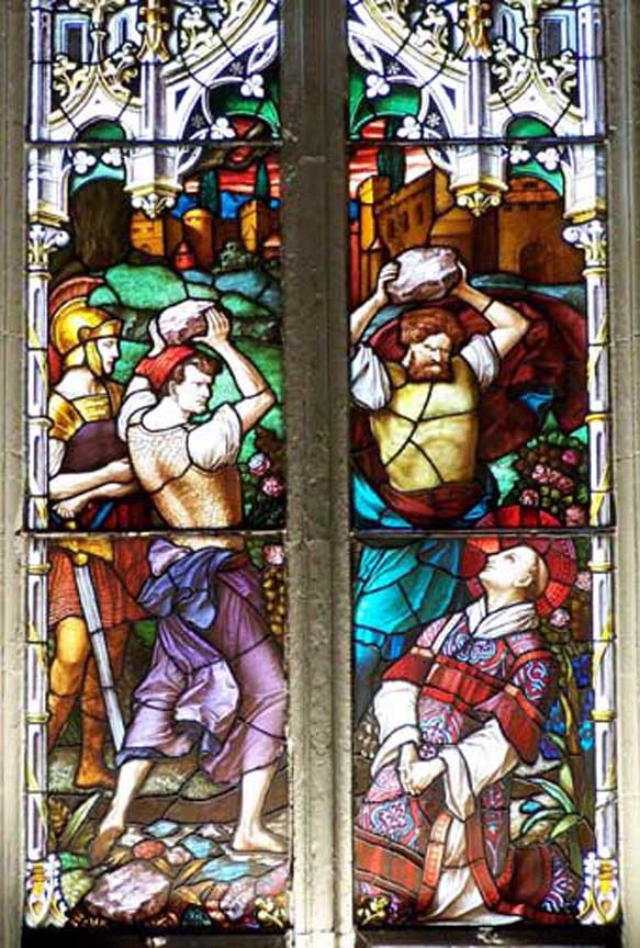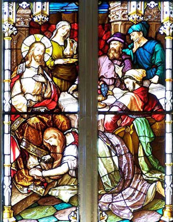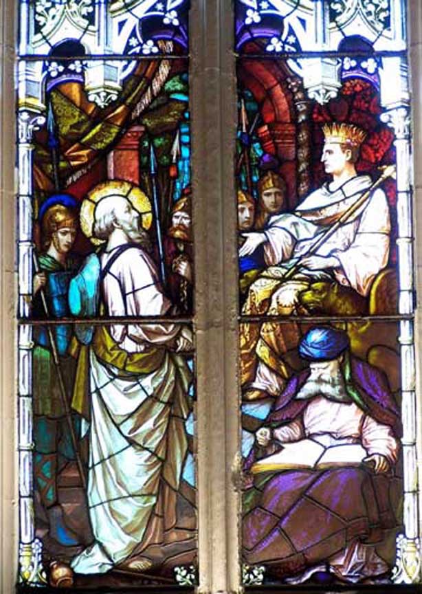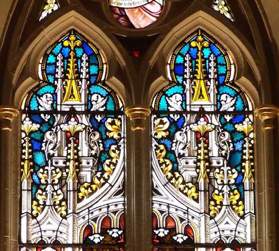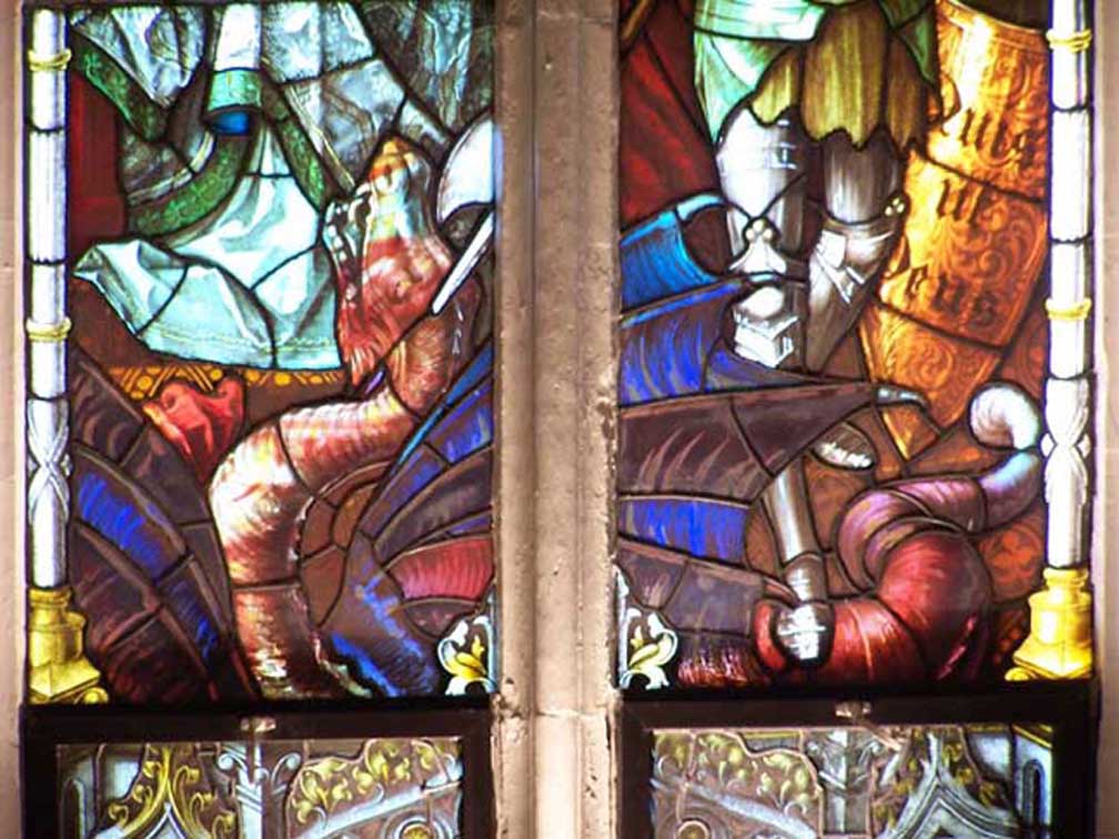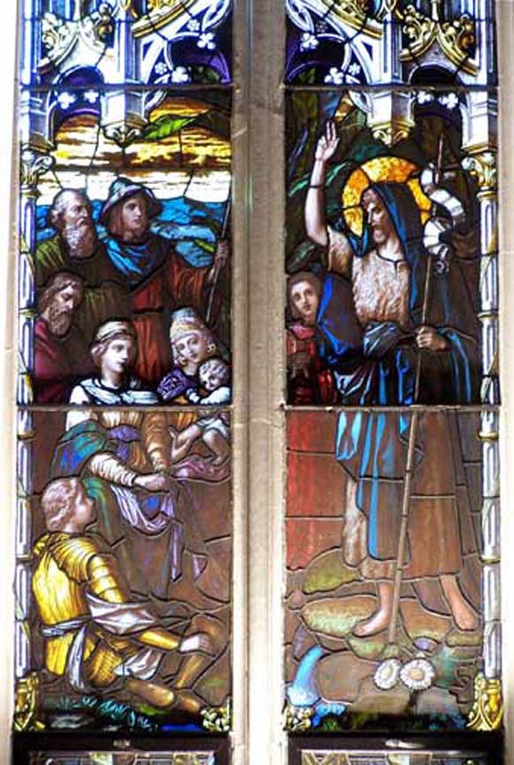 Except for the Hardman window, all the others depict a scene in the life of a single saint.