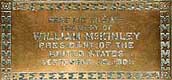 The saddest event to befall the building was when the body of President McKinley, assassinated at the Buffalo Pan-American Exposition in 1901, lay In State in the center of the main lobby. A bronze floor plaque and roped off area commemorate the spot to this day,.-- Source: A History of the Old County Hall, by Alison Kimberly