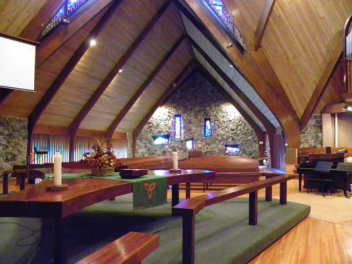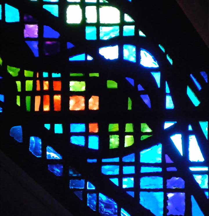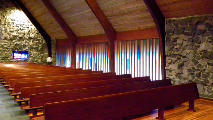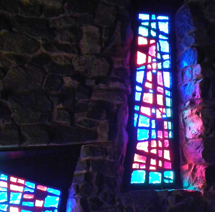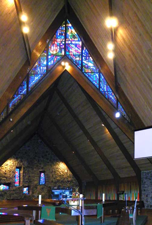 ![]() Photo taken from the chancel: the south (left) and north (right) naves are identical. North nave photos: in this reddish brown background table. South nave photos: below in the blue background table. North Nave ![]() Photo of the north nave taken from the chancel. Note chevron shape stained glass window. Photos of the south nave (identical in shape and form to the north nave) found below in dark blue colored table. ![]() Detail - upper north nave chevron shape stained glass window ![]() Detail - upper north nave stained glass window ![]() Photo of the north nave taken from the chancel. ![]() Lockport dolomite wall is two feet thick; the roughness of the wall helps the acoustics of the room by absorbing some of the echo. Note three lower windows (next three photos below) ![]() Lower left faceted stained glass window ![]() Lower center window ![]() Lower right window