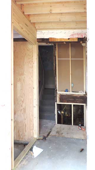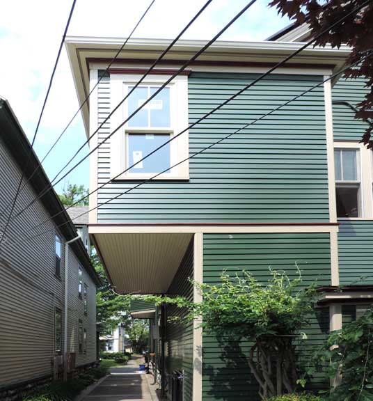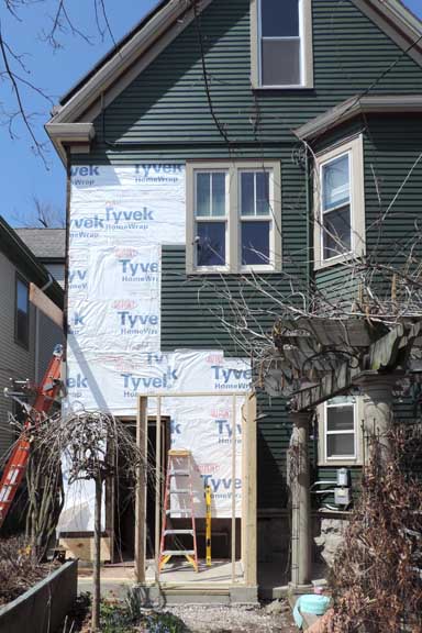 View from the backyard ... The elevator shaft opens into the newly built bay.