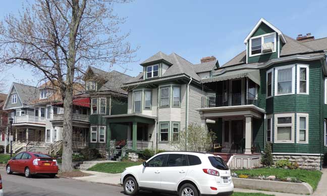 Four of the five houses built by railroad conductor / builder / architect Charles F. Jekel on Granger Place. #39 is 3rd from the right. Jekel lived in the second house from the right.