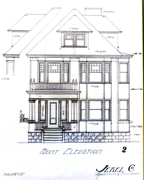 Street lore is that Jekel salvaged Pan-American Expo building material which was free for the taking after the Expo closed but before it was demolished and scrapped. Jekel supposedly used a horse and buggy to transport the wood to Granger Place and used the materials to build his five houses.