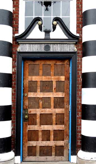 ![]() Note name above the columns: The Tabernacle ... Striped columns are inspired by those in Italy, for example, on the Baptistery in Florence ... See “The Tabernacle” and S7, on Buffalo Rising, Aug 30, 2013 (online August 2014) ![]() ![]() Note swan's neck pediment ... Wooden, paneled door ![]() |