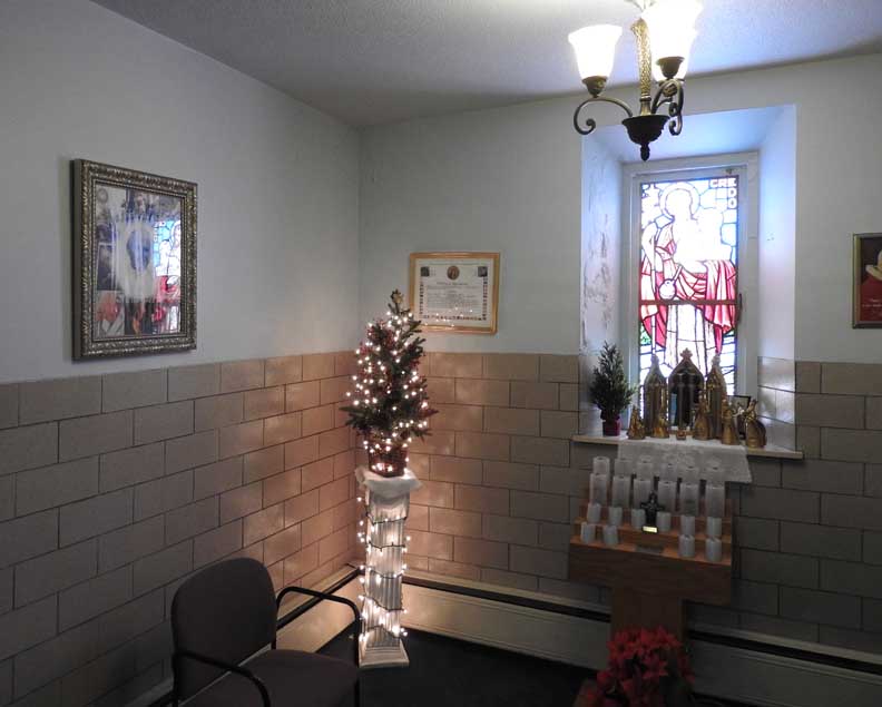 The chapel is located at the east end of the narthex