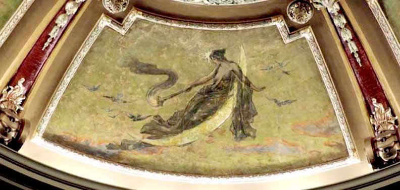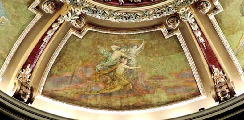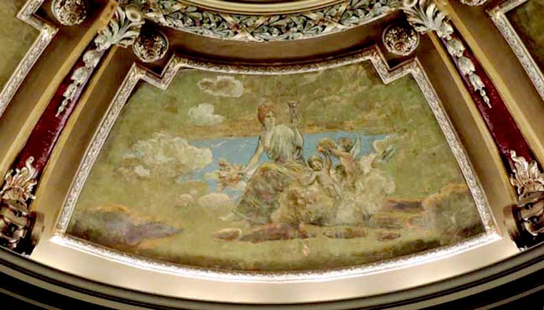 The Dome ![]() Beaux Arts Classicism style center round dome painted by Raphael Beck ![]() Nine muses(?) ![]() Sun ![]() Detail below: ![]() ![]() Detail below: ![]() ![]() Detail below: ![]() ![]() Detail below: ![]() ![]() Detail below: ![]() |