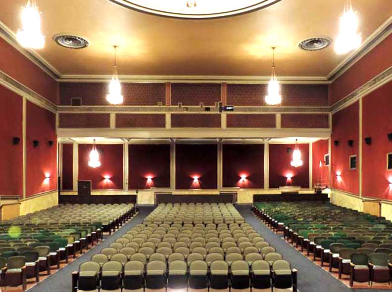The Auditorium 2014 photos ![]() Round center dome ... Oval stage dome ... Proscenium stage ![]() The larger screen, required to show newer films in digital format, sits in front of the original screen. ![]() Two details below: ![]() Detail #1 ... Beaux Arts Classical style ![]() Detail #2 ... Cloth reinforced plaster ornamentation ... Acanthus leaves (top) ... Bead-and-reel ... Fluting ... Festoon ![]() Art Deco style wall sconce ![]() Art Deco style light fixture ... Two details below: ![]() Art Deco style light fixture ... Detail #1 ![]() Art Deco style light fixture ... Detail #2 ![]() Rear of auditorium |