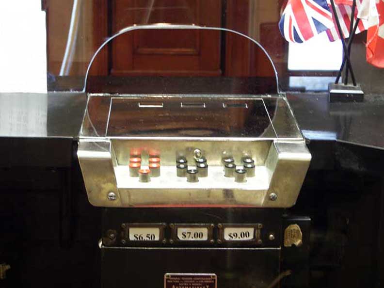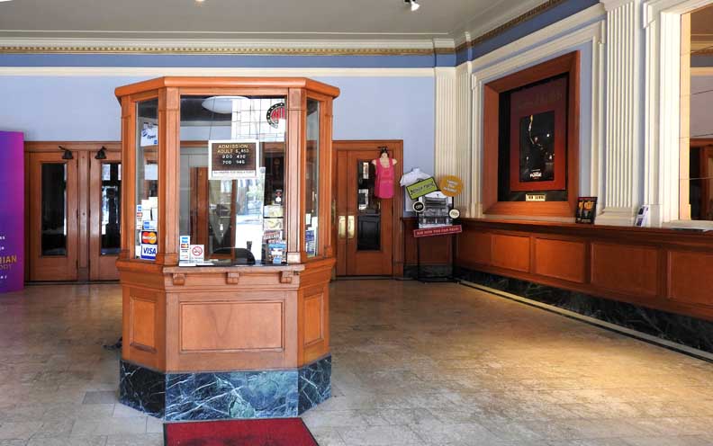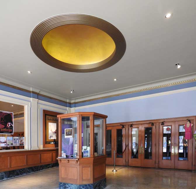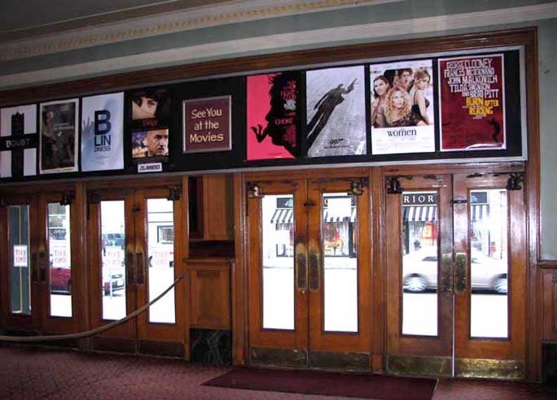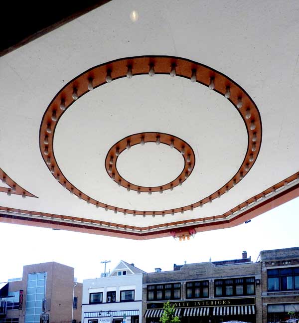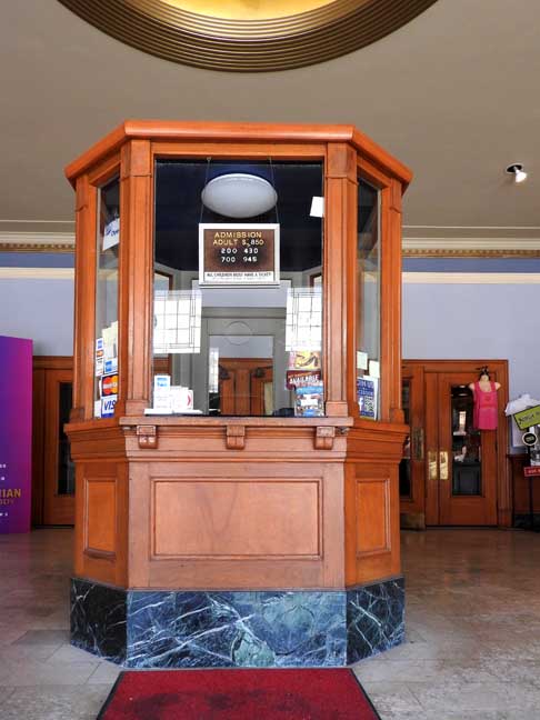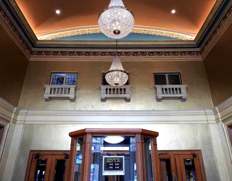 Outer Ticket lobby![]() Looking through the front doors at the lights underneath the marquee ![]() 2008 photo. Contrast to the 2018 photo below: ![]() Looking through the front doors out onto Hertel Avenue ![]() ![]() Series of stained glass medallions not original ![]() False ceiling and dome not original ... Photos in the second half of this page below illustrate what the section above the false ceiling looks like in July of 2018 ![]() ![]() 2008 photo ... Original ticket machine ![]() Friezes (painted blue), fluted plaster pilasters, and wainscoting ornament the walls (five details below:) ![]() Wainscoting ![]() All original: Gouged dentil molding ... Blue frieze ... Fluted pilaster ... Shoulders ![]() Gouged dentil molding ![]() Columns flank original wooden frame and original painted plaster surround with shoulders ![]() Note original mirror (detailed below:) ![]() Original mirror and frame, including shoulders |