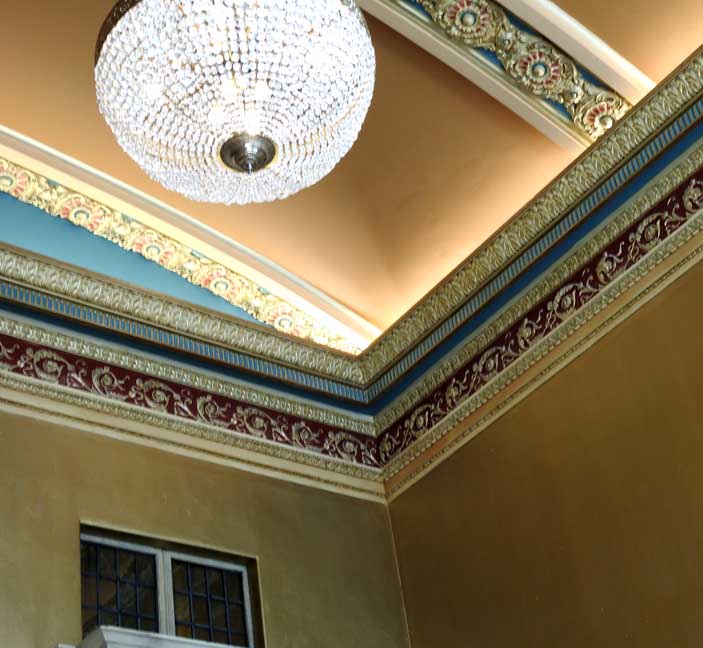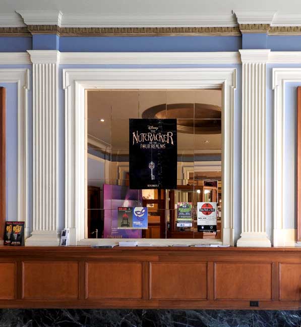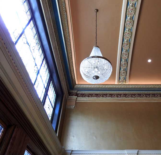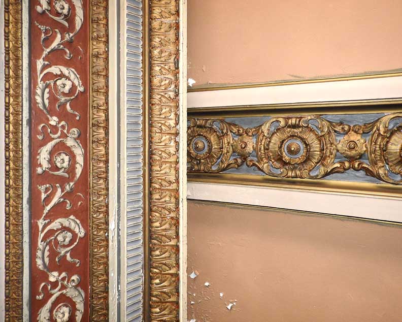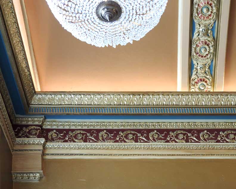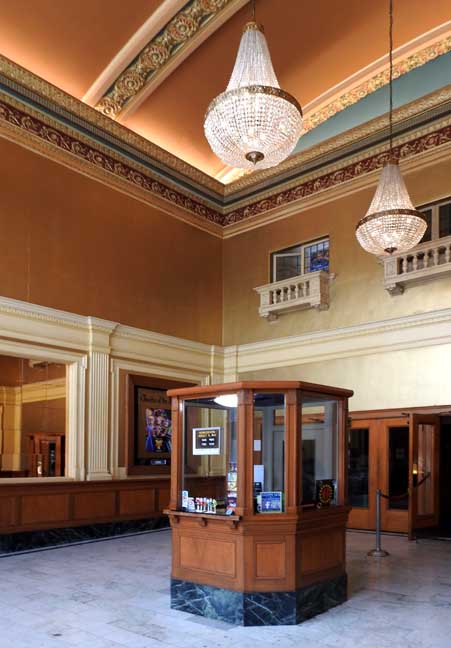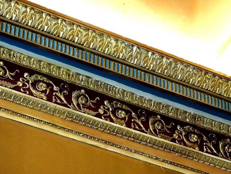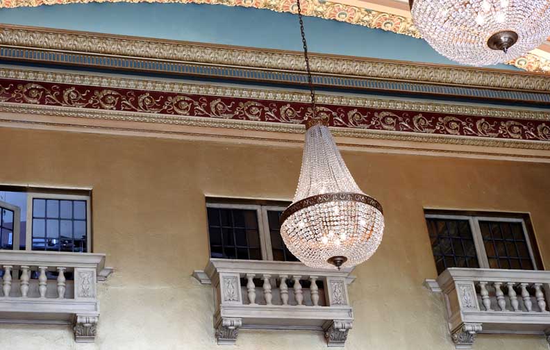 lobby June 2019 Photos ![]() ![]() ![]() ![]() ![]() Leaf-and-dart molding at top ... Flutes ... Leaf-and-dart molding ... Scrolling acanthus leaves ... Bead-and-reel molding ![]() Note cove lighting ![]() Three balconets ![]() ![]() ![]() ![]() Balconet ... Acanthus leaves in side panels and underneath ancones ... Double vase balusters |
