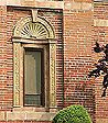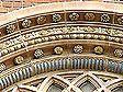 Colored, glazed terra cotta rose window surround: rosettes, egg-and-dart |