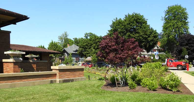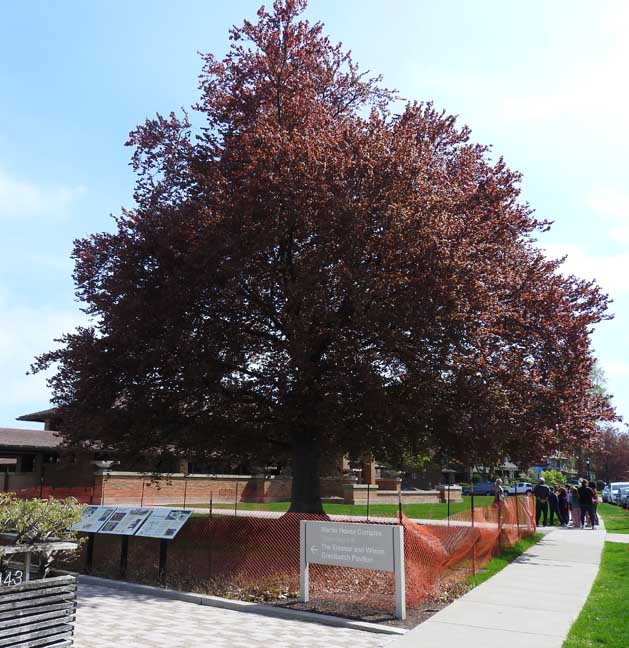 Copper Beech sapling chosen by Frank Lloyd Wright in 1905 ... Looking east on Jewett Avenue ... Martin House in left background